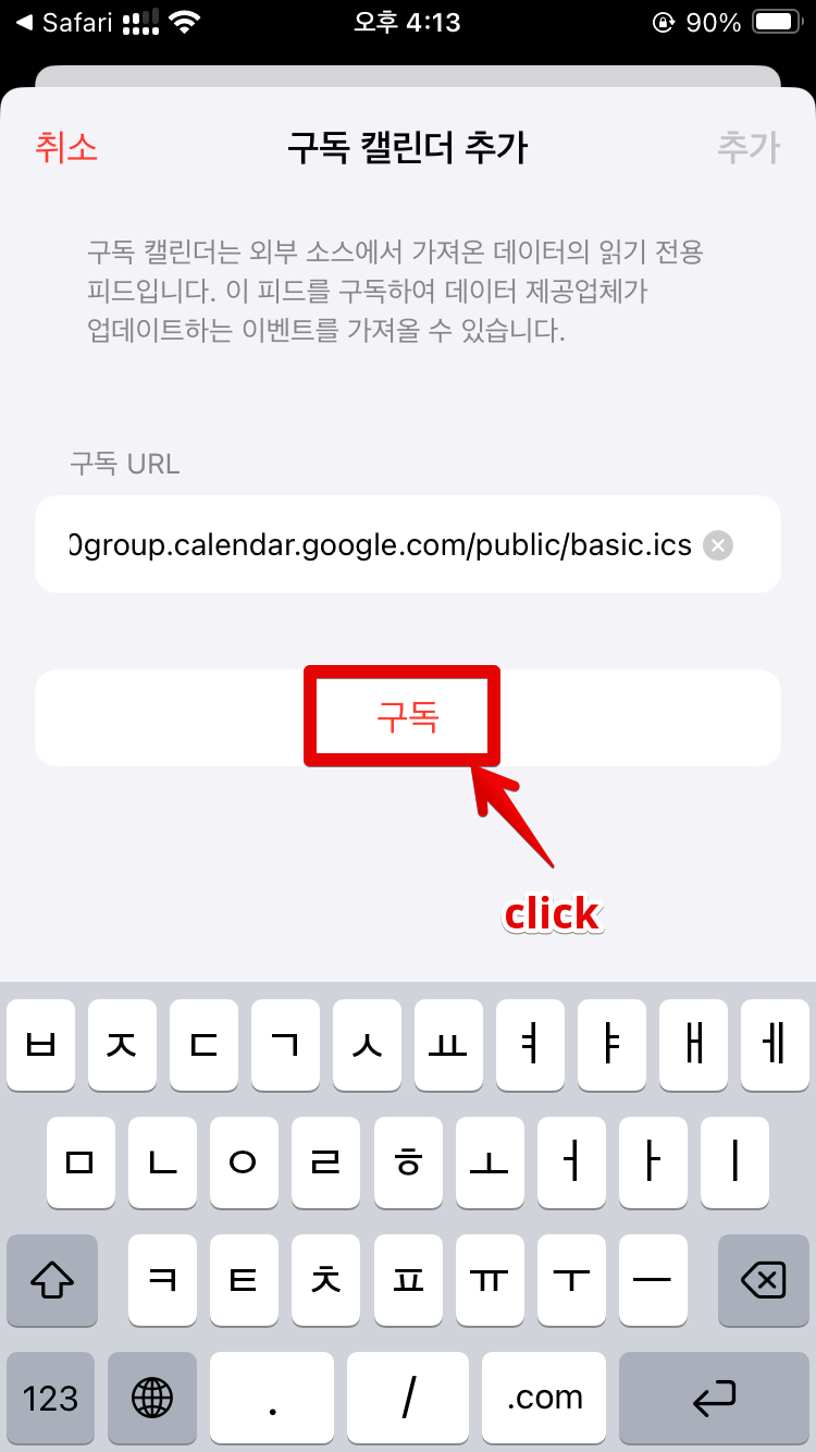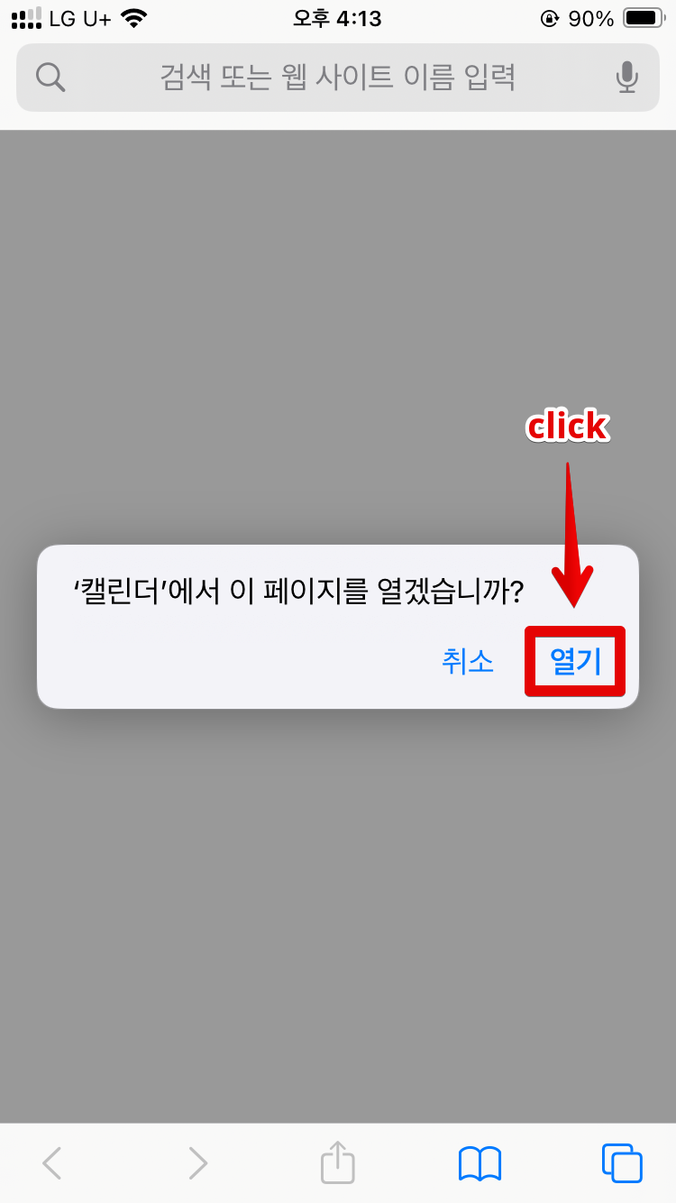 그러면 바로 구글캘린더 어플이 실행되면서 아래 그림처럼 캘린더를 추가하겠냐는 메시지가 나오고