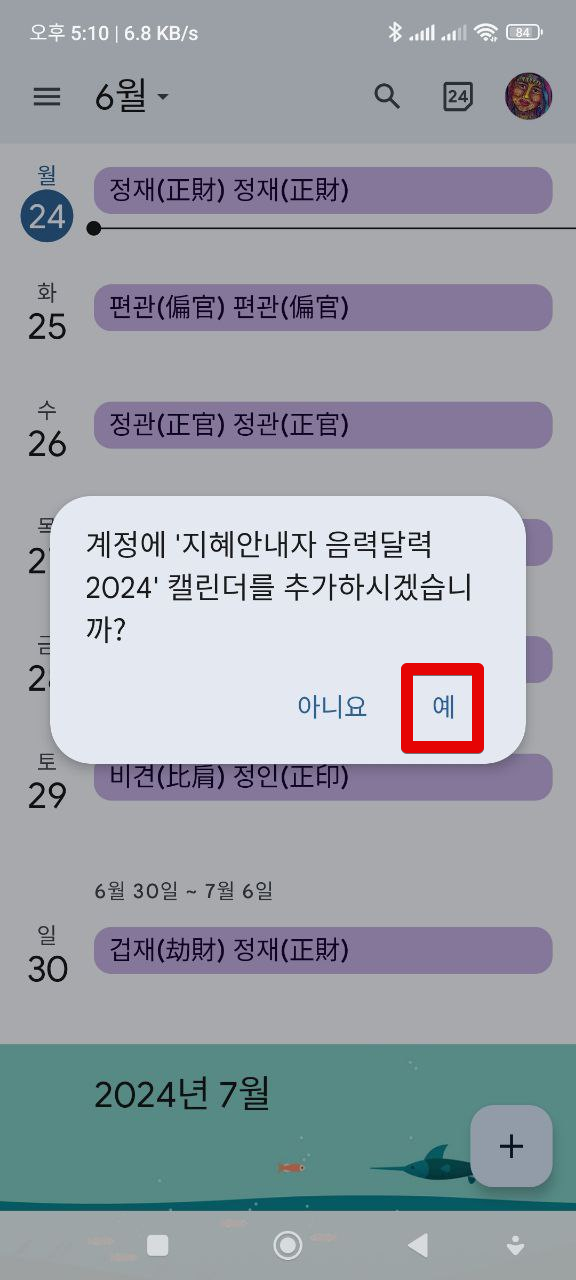 여기서는 "지혜안내자 음력달력(손 없는 날) 2024" 달력을 등록해 보겠습니다.