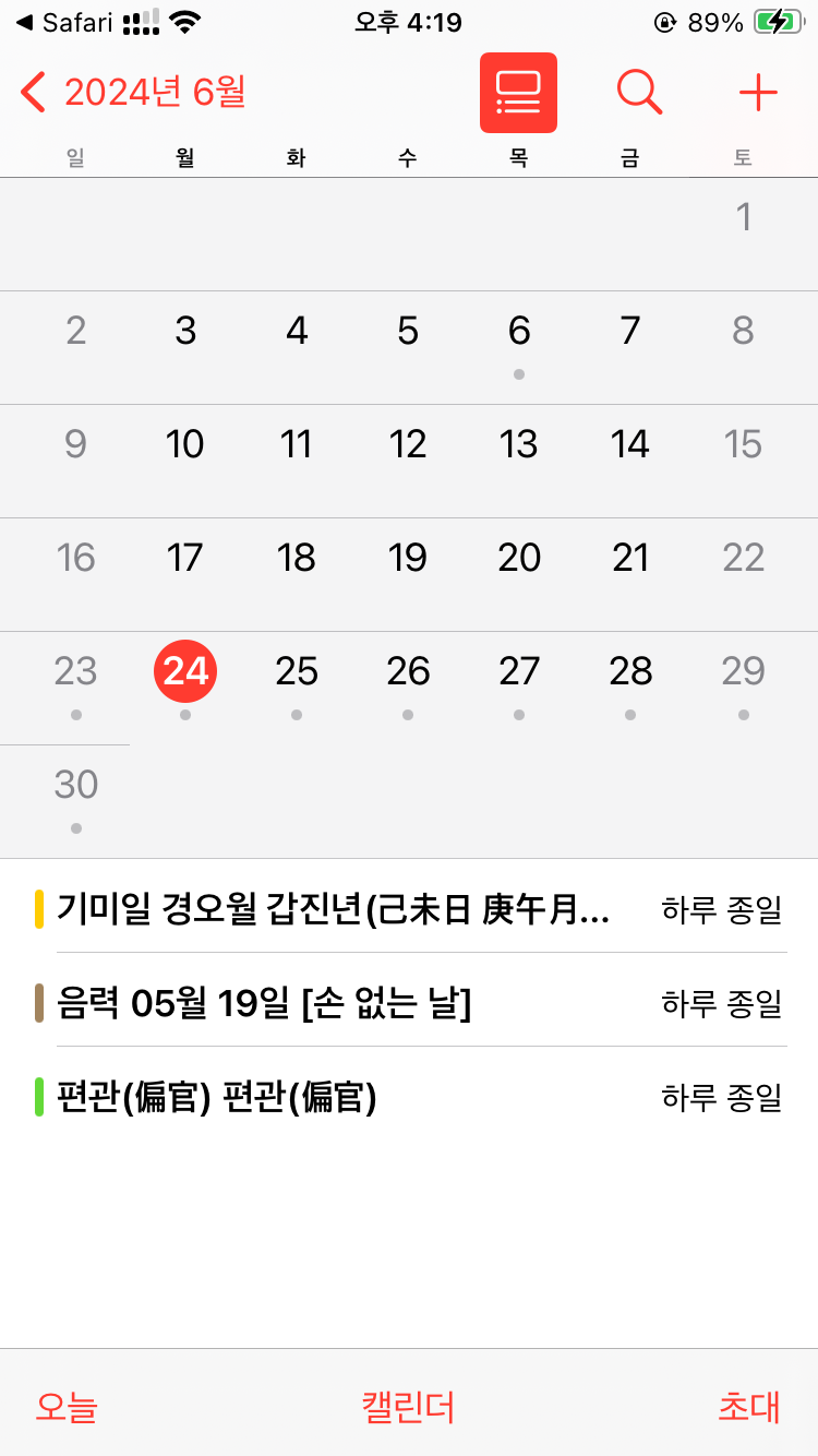 이제 구글캘린더 어플을 실행시키면 아래 이미지처럼 2024년 음력 달력을 볼 수 있습니다.