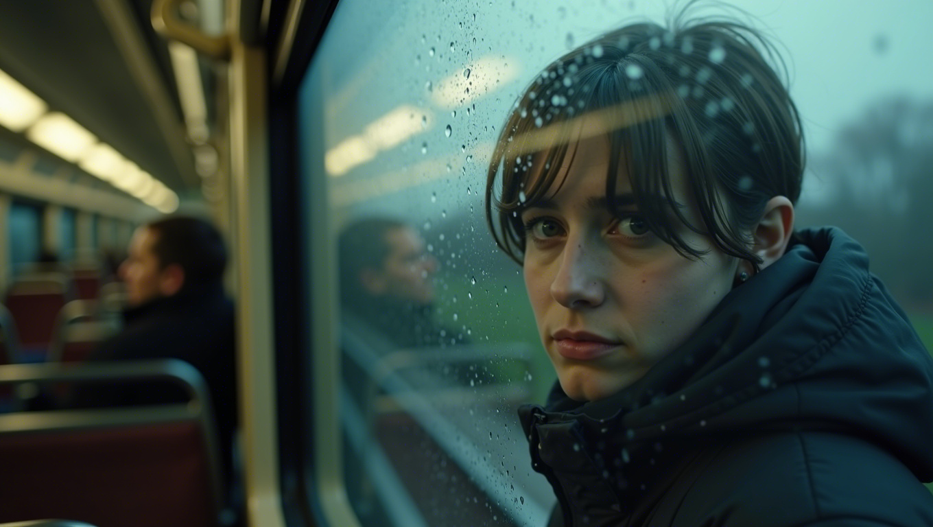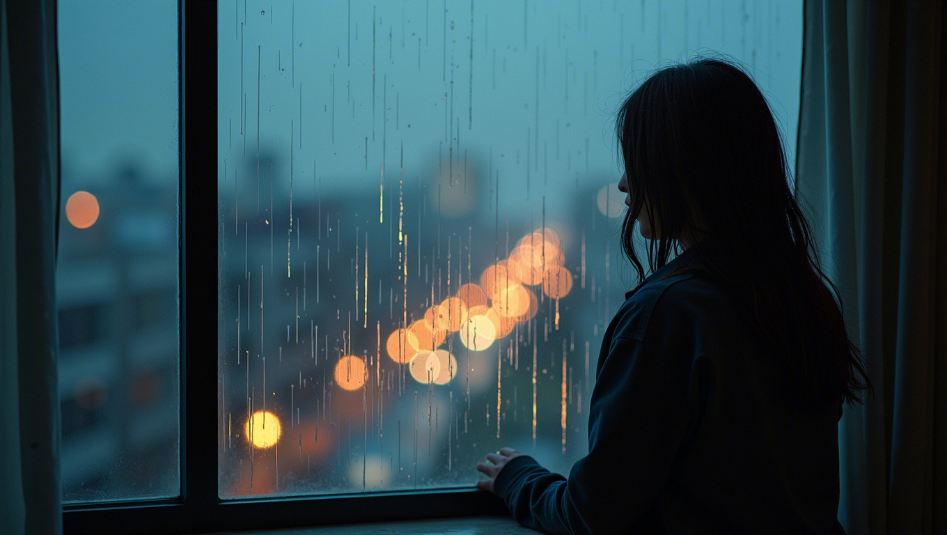 빗속의 고독: 쓸쓸한 분위기의 빗속 풍경과 함께 고독한 감정을 표현